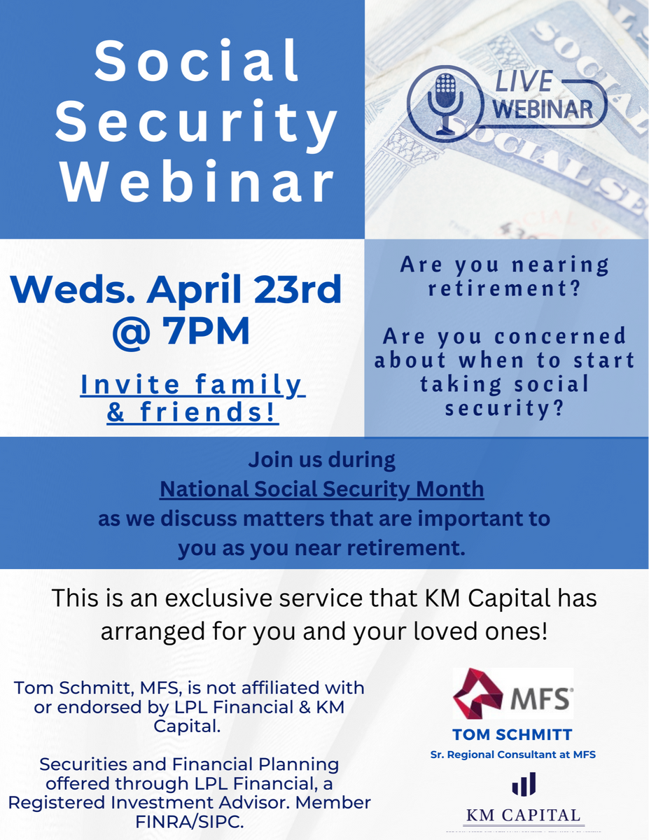 Join us during National Social Security Month as we discuss matters that are important to you as you near retirement.